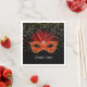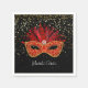 Cette serviette en papier est montrée en noir sur une serviette blanche avec des étoiles d'or et une impression festive de masque de carnaval Mardi Gras. Customisez cet objet ou achetez tel quel.