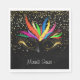 Cette serviette en papier de la taille d'un cocktail standard est présentée avec un imprimé festif de masque de carnaval Mardi Gras sur une couleur arrière - plan noire. Montré noir sur la serviette en papier blanc. Taille standard du déjeuner. Customisez cet objet ou achetez tel quel.