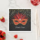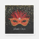 Cette serviette en papier est montrée en noir sur une serviette blanche avec des étoiles d'or et une impression festive de masque de carnaval Mardi Gras. Taille standard du déjeuner. Customisez cet objet ou achetez tel quel.