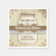 Magnifiques serviettes en papier de bocal en mason avec arrière - plan rustique en bois de grange, dentelle vintage, corde à ficelle et ornements floraux aux coins. Serviettes en papier pour mariage rustique et occidental dans la grange, le ranch, la ferme ou le village.