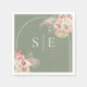 Ces serviettes en papier vert sage bohème élégantes et simples présentent des florales d'herbe de pampa aquarelle avec une arche chic et des initiales monogrammées. Conçues par Thisisnotme©