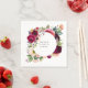 Élégant cadre bohème à l'aquarelle de fleurs, de plumes et de feuillage dans des tons chic de violet, de bordeaux, de rose, de pêche et de vert, serviettes en papier personnalisées. Le style de police de texte et la couleur peuvent être personnalisés. Conçus pour correspondre à notre collection Bohemian Blooms.