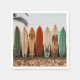 Serviettes en papier avec image de planches de surf sur la plage.