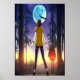 Un jeune en t-shirt jaune et pantalon noir seul dans la forêt regardant la lune. C'est un art généré par l'IA