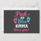 Célébrez votre moment spécial avec ce genre personnalisé révéler design! Doté d'empreintes de bébé rose et bleu ludique avec l'expression "rose ou bleu, [Nom] vous aime!", ce design mignon est parfait pour les baby showers, les annonces de grossesse, les invitations, les vêtements et les cadeaux.