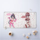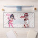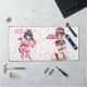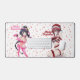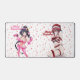 Vibrant pink anime-inspired character with fluffy trim and heart motif backdrop. Bold, playful cosplay vibe for Valentine- or pop-culture merch on apparel and accessories.