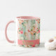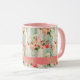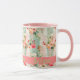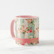 Cette illustration vintage shabby-chic présente une zone personnalisable pour un nom sur la coquille Saint-Jacques rose placée sur un fond à l'ancienne orné de fleurs dans des tons de vert clair, de crème, de rose clair et foncé, et des touches de pêche. Ce design est un ajout charmant à d'autres collections de tasses dans ma boutique, ce qui en fait un élément idéal pour introduire une ambiance printanière rafraîchissante dans votre maison. Qu'il soit utilisé pour améliorer votre routine de café du matin ou pour divertir les invités lors d'une soirée thé, cette tasse apporte une touche de sophistication à n'importe quelle occasion. De plus, c'est une excellente option de cadeau pour des occasions spéciales comme la fête des mères ou l'anniversaire d'une amie. Idéal comme marque-place pour votre prochaine soirée entre filles, cadeaux d'entreprise et soirée des dames de l'église.