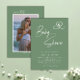 This modern two-sided baby shower invitation blends soft shale green tones with elegant script and a heartfelt photo layout. The front sets a calm, stylish mood, while the back highlights a favorite photo and sweet arrival message—perfect for sharing the joy of welcoming a little one.