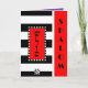 Q : Qu'est-ce que le noir et blanc et le "rouge" partout ? A : Un journal :^) ET cette carte de voeux distinctive : -D Shalom en anglais et en hébreu sur des rayures noires et blanches en gras orne cette forme de communication classe. La carte intérieure est bordée et coordonnée pour votre plaisir d'écriture. ~ karyn