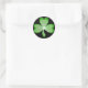 Un design moderne avec un shamrock brillant et brillant sur un arrière - plan noir. Sticker avec un design personnalisable pour vous de personnaliser avec votre propre couleur, texte, images et idées arrière - plan. Créé à l'aide de photographies originales et de techniques numériques de Jess Perry.