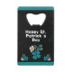 Shamrock Clover Irish Happy St. Patrick`s Day Carte de crédit Ouverture bouteille. Un joyeux texte de la Saint Patrick avec un shamrock irlandais dessinant pour la chance sur un arrière - plan noir. Vous pouvez modifier le texte.