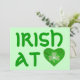 Un design moderne avec un coeur vert éclatant et un shamrock pétillant à l'intérieur sur un arrière - plan vert et "Irish at (heart)" écrit en vert. Invitation avec un design personnalisable pour vous de personnaliser avec votre propre texte en couleur arrière - plan, des images et des idées. Créé à l'aide de photographies originales et de techniques numériques de Jess Perry.