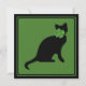Silhouette noire d'un chat avec un arc shamrock sur un arrière - plan vert.