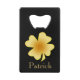 Un shamrock en or avec une brûlure d'or foncée au milieu fait une déclaration élégante sur ce ouvre-bouteille personnalisé. Votre texte est en or sous l'image du shamrock, qui est placé sur un arrière - plan noir. Le dos a le même arrière - plan et la même image, mais sans le texte. Montre ton côté irlandais !