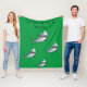 Une couverture en toison verte avec des requins et un nom personnalisé.