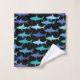 Des silhouettes de requins dans les tons bleus avec un arrière - plan noir.