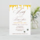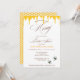 This Honey Themed bridal shower invitation features a sweet honeybee and honeycomb theme, perfect for a bride who’s found her “honey.” The left side showcases a vibrant yellow honeycomb pattern with playful bees, while the top is accented with whimsical dripping honey artwork.