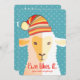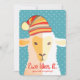 Cool brebis portant un casquette d'hiver en bonneterie sur cette carte de Noël "fait main avec amour" pour vos projets artisanaux de tricot et de crochet.