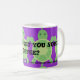 Commencez votre jour avec un certain humour de tortue ! Cette tasse de café comporte le troupeau du grand-papa du logo audacieux de la tortue des tortues aussi bien qu'un arrière - plan pourpre attirant en l'honneur de l'association de l'Alzheimer ! Tous les pourcentages gagnés de la vente de chaque tasse iront à cette organisation extraordinaire par la promenade pour finir Alzheimer !