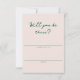 For the epically chic and modern couple, invite guests to a modern and elevated wedding with coastal Italian tennis club vibes in sun-washed pale pink. This RSVP enclosure card is sleek and chic with dark green reply request text for guests to fill in who is a yes and who is a no. The backside of this insert card features a custom QR code to take guests directly to the RSVP portal of the wedding website. This design mixes modern sans serif type with a hand-written style script for an elevated but still casual vibe fit for any chic venue, from beach club to tennis club and beyond.
