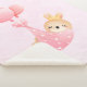 Une couverture avec une adorable illustration. Un petit lapin portant une petite couronne dorée. Porté par des ballons dans une couverture de coeur rose.