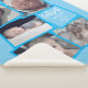 C'est une couverture bébé douce, bleue, photo, avec carré pour le nom et l'information du bébé.