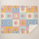 Magnifique conception de couverture pastel adorable présentant un motif patchwork de nuages, de cœurs et d'étoiles heureux dans des teintes douces de jaune, rose, bleu et crème. Parfait pour une décoration intérieure cosy, joyeuse et fantaisiste.