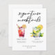 Cette feuille de menu chic et fantaisiste propose une typographie noire personnalisée au-dessus de 2 boissons non alcoolisées et leurs ingrédients pour votre bar mariage. Un joli temple de Shirley et un dessin de Mojito vierge ajoutent une touche cool à votre menu de bar. Complétez avec les noms du couple et la date de leur réception.