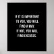 Impression artistique Inspirationnelle de 8 po x 10 po. L'oeuvre idéale pour votre maison ou votre bureau, cela ferait aussi un excellent cadeau pour un ami ou un membre de la famille qui a besoin d'un encouragement positif. "Si c'est important, vous trouverez un moyen. Sinon, vous trouverez des excuses." Le design est configuré pour être imprimé 8"x10" - Vous pouvez modifier la taille de l'impression dans la section de personnalisation, mais je ne suggère pas d'aller plus de 50% - 75% de la taille originale de 8"x10", car la qualité d'impression sera réduite. Si vous souhaitez une grande taille, veuillez me contacter directement avec la taille que vous souhaitez et je vous passerai une commande personnalisée gratuitement. Contact : info@dailyquotes.co.