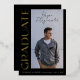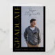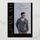 Célébrez le jalon de la remise des diplômes avec notre carte de Faire-part sophistiquée et élégante. Cette carte frappante présente un arrière - plan noir intemporel qui complète parfaitement une seule photo du diplômé orientée portrait. A côté de la photo, le mot "GRADUATE" est emblaqué dans une véritable feuille d'or luxueuse, présentée dans une police audacieuse et moderne qui ajoute une touche de classe contemporaine. Le nom du diplômé est écrit à la main avec élégance en haut de la photo, ajoutant une touche personnalisée et chaleureuse qui rend chaque carte unique. Ce style de signature distinctif garantit que le faire-part se sent à la fois personnel et prestigieux. À l'arrière, il y a suffisamment d'espace pour un message plus long, vous permettant de partager votre fierté, votre joie et vos souhaits avec vos amis et votre famille. Que vous mettiez en valeur les réalisations du diplômé, que vous annonciez des plans d'avenir ou que vous exprimiez simplement votre gratitude, cet espace est parfait pour transmettre vos sentiments de manière significative. Parfait pour les baccalauréats, les collèges ou toute autre célébration de remise de diplômes, notre carte de Faire-part est conçue pour honorer cette occasion spéciale avec style et élégance. Faites de votre faire-part un souvenir inoubliable grâce à ce souvenir magnifiquement artisanal que vos amis et votre famille chériront.