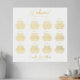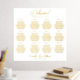 Cette véritable affiche en feuille d'or peut être encadrée pour faire le tableau de sièges élégant et chic parfait pour mariage, Barmitzvah, Baptême, Graduation ou autre événement comme souhaité. 12 Tableaux, 8 noms par table, peuvent être modifiés et la couleur arrière - plan peut être modifiée. Véritable feuille d'or (ou vous pouvez passer à argent pour convenir à votre thème d'événement).