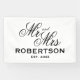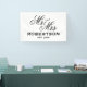 Nouvelle mariée Monsieur et Madame, signature personnalisée de mariage. Qualité intérieure et extérieure. Disponible en différentes tailles pour l'intérieur et l'extérieur. Petites formes moyennes et grandes. Avec ou sans trous et crochets. Couleur arrière - plan personnalisable. Modèle élégant pour couple marié, lune de miel, marié et marié ou mari et femme. Typographie classique avec nom de famille et date du mariage. Idéal aussi pour la douche nuptiale ou la fête de fiançailles. Couleurs simples noir et blanc.