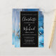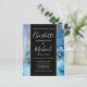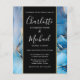 Doté de noms de style signature, cet élégant faire-part de mariage budget peut être personnalisé avec vos informations en lettres chic sur une bande noire et or et un arrière - plan agate bleu. Conçu par Thisisnotme©