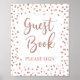 Le panneau 'Livre d'or, veuillez signer' pour la douche de bébé présente un magnifique design de confettis pailletés de rose doré.