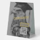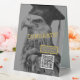 Une façon mémorable de chérir les événements de la vie. Signe de table de la fête de graduation personnalisée avec code QR avec un motif de grade d'aigle personnalisé. Ajoutez le nom et l'année de cours de votre diplômé. Utilisez le code QR pour un site Web, un fonds collégial (entre autres). Facile à utiliser modèle. Couleurs noir et or avec motif gris aigle. Améliorez votre fête de remise des diplômes. Utilisez le modèle pour personnaliser.