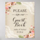 Pancarte de livre d'or de mariage champêtre en toile de jute et dentelle florale.