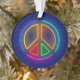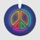 Graphisme d'un signe de paix néon multicolore sur fond de mur de briques