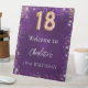Un signe de bienvenue pour une fête de 18e anniversaire girly et glamour. Un arrière - plan violet profond décoré de faux parties scintillant, brille. La couleur violette est inégale. Personnalisez et un nom.