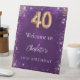 Un signe de bienvenue pour une fête de 40e anniversaire girly et glamour. Un arrière - plan violet profond décoré de faux parties scintillant, brille. La couleur violette est inégale. Personnalisez et un nom.