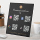 Obtenez plus d'abonnés avec ce panneau cool de piédestal, avec 4 codes QR, Logo Professionnel Personnalisé & Texte. Ajoutez facilement vos détails en cliquant sur l'option "personnaliser".