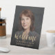 Ce panneau d'accueil personnalisé de 50e anniversaire présente la photo, le nom et l'anniversaire de l'invité d'honneur, ainsi que le mot "bienvenue" dans un élégant script de calligraphie couleur or. Un écran sombre permet de faire apparaître le texte. Une excellente façon de célébrer quelqu'un qui a cinquante ans !