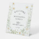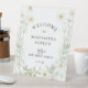 De jolies marguerites bohèmes créent un cadre floral blanc moderne sur ce panneau de bienvenue d'anniversaire. Tout le texte est modifiable.