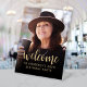 Ce panneau d'accueil personnalisé pour 60e anniversaire présente la photo, le nom et l'anniversaire personnalisés de l'invité d'honneur, ainsi que le mot "bienvenue" dans un élégant script de calligraphie couleur or. Un écran sombre permet de faire apparaître le texte. Une excellente façon de célébrer quelqu'un qui a soixante ans !