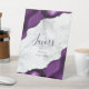 Une enseigne chic et élégante pour accueillir les clients mariages à votre table de favoris. Le mot "favors" apparaît dans la calligraphie d'écriture manuscrite violet foncé, avec l'invitation "s'il vous plaît prendre un" ci-dessous en police serif noire. Des motifs d'aquarelle violet taillés avec des faux parties scintillant argentés encadrent le message en deux coins sur un arrière - plan gris et blanc en marbre. Voir notre collection pour la suite de faire-part de mariage et la papeterie de jour correspondant.