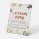 Cette enseigne ludique présente un charmant thème de pirates, avec des motifs vibrants de bateaux de pirates, des coffres au trésor et des éléments nautiques en bleu et rouge gras. Encouragez les invités à laisser des messages amusants ou des mots d'encouragement sur les couches pour ces changements tard dans la nuit, ajoutant un élément amusant et de soutien à votre événement. Parfait pour poser sur une table cadeau ou une station de couches, ce panneau de piédestal s'intègre parfaitement à votre décor sur le thème des pirates, assurant une atmosphère cohésive et joyeuse. Idéal pour rendre la célébration de votre bébé garçon mémorable et engageante, ce signe apporte une touche d'aventure et de rire à votre journée spéciale.