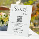 Album de mariage numérique QR Code vos invités peuvent scanner et "partager l'amour". Ajoutez ces panneaux de piédestal acrylique à votre réception afin que les invités puissent télécharger des photos sur votre album en ligne. Personnalisez-le en ajoutant un site Web ou un texte personnalisé. Design minimaliste en noir et blanc avec un style de police intemporel.