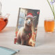 Portant Un Chapeau De Père Noël Et Entouré De Cadeaux De Noël Est Un Alpaca Très Heureux.