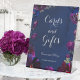 Un superbe améthyste violet, saphir bleu et bleu marine bijou tonalité mariage autonome Cartes et Cadeaux signe acrylique, avec une symphonie de violet profond, bordeaux et framboise rouge pivots sur un arrière - plan bleu marine watercolor-wash avec vos noms et date en dessous.
