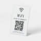 Un guéridon moderne et simple pour permettre à vos clients, clients ou invités de se connecter facilement à votre réseau wifi. Téléchargez le code QR de votre wifi et ajoutez d'autres détails, tels que le nom et le mot de passe du réseau. Parfait pour les bureaux, les hôtels, les locations de vacances, etc.
