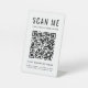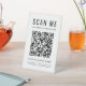 Panneau de piédestal de table moderne pour votre entreprise avec votre code QR pour les clients à rechercher une liste de vos produits, services et prix. Ajoutez votre nom, votre numéro de téléphone ou d'autres informations dans une simple typographie.
